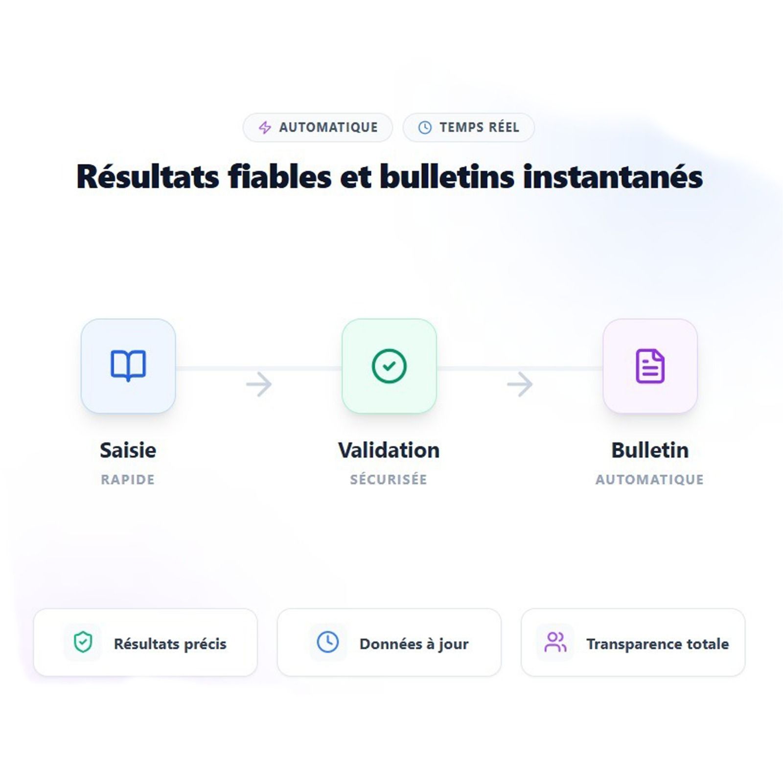 Suivi des processus académiques. Consulté : suivi en temps réel des documents pédagogiques et contenus partagés. Envoyé : diffusion centralisée des supports, emplois du temps et informations clés. En cours : coordination des validations académiques et administratives. Validé : contenus et processus approuvés, prêts à être utilisés à grande échelle.